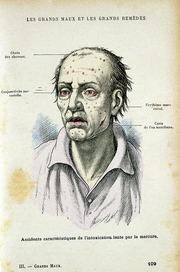 Some of the characteristics of habitual mercury poisoning. Parisian illustration (1890) via the Universal History Archive.