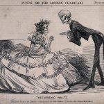 - Drawing upon memento mori imagery, a skeleton gentleman asks a skeleton lady to dance the “Arsenic Waltz” at a ball. Wood engraving in Punch Magazine (1862) via the Wellcome Collection.